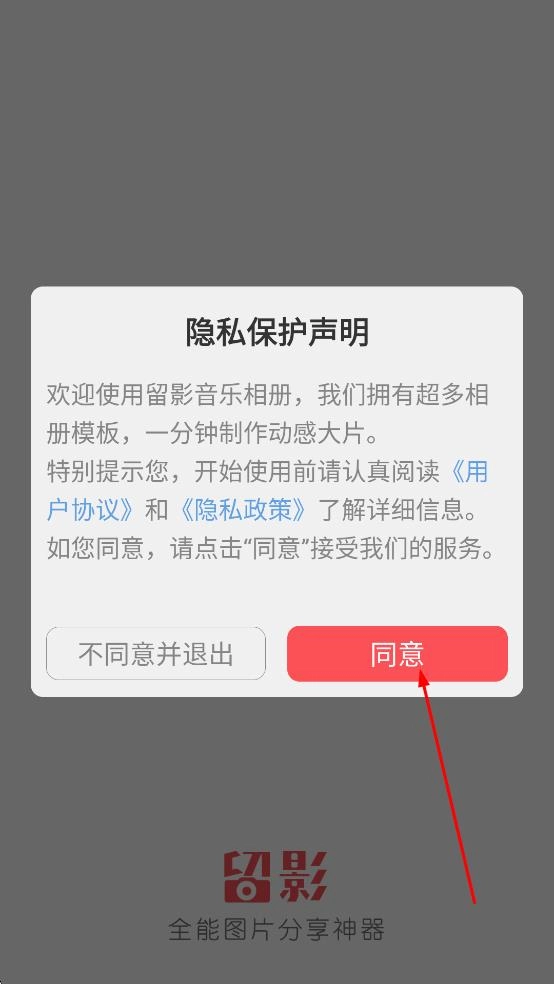 1、在隐私保护声明弹窗中,点击同意,进入应用主界面。