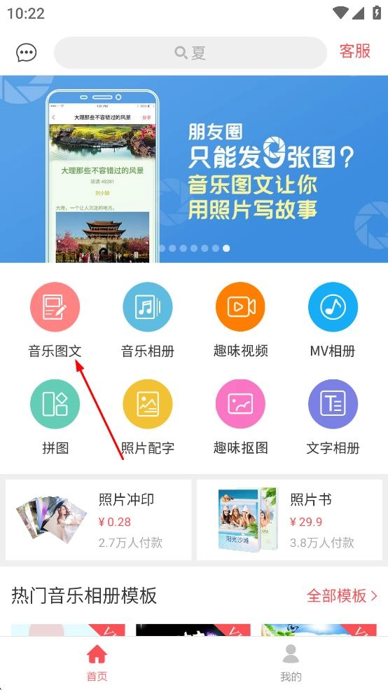 2、在应用主界面,点击音乐图文,进入音乐图文作品页面。