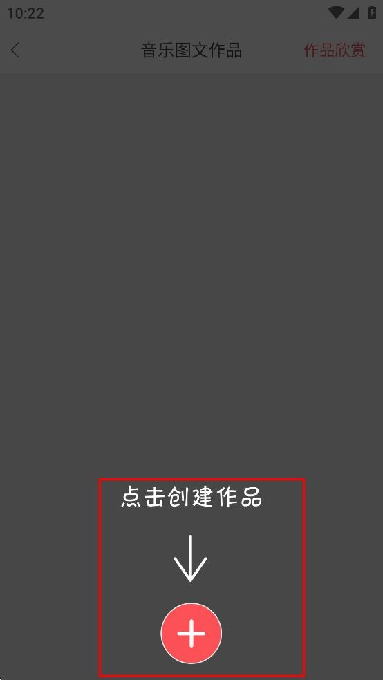 3、在音乐图文作品页面,点击红色加号按钮,创建作品。