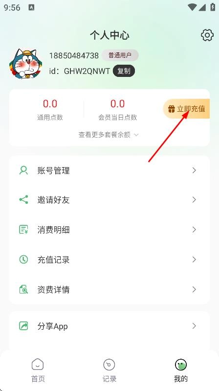 2、在个人中心页面,点击立即充值,进入会员套餐页面。