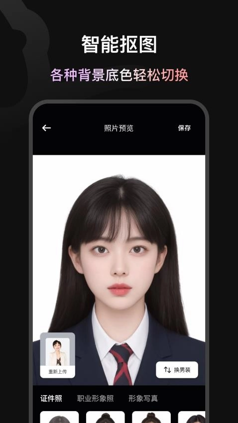 5. 轻点“保存”按钮,即可把证件照保存至本地,亦或是输出为电子版。