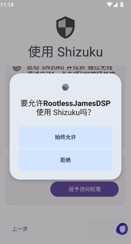 3、接着,允许Shizuku授权其Adb权限以进行激活。