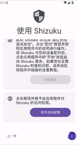 1、进入App后,选择一种激活方式,一般选择Shizuku方式。