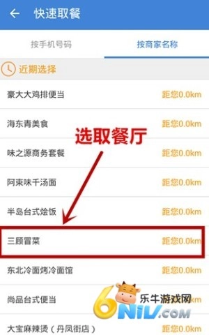 挑选商家时,可依据商家名称及距离,找出离自己最近的那一个。