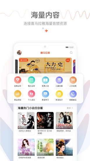 1. 音频内容丰富多元:包含音乐、小说、新闻、英语、人文等各类题材,充分满足不同用户的需求。