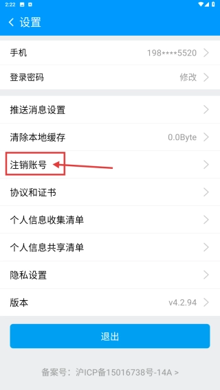 3、在设置界面,找到注销账号选项并点击,进入注销账号确认页面。