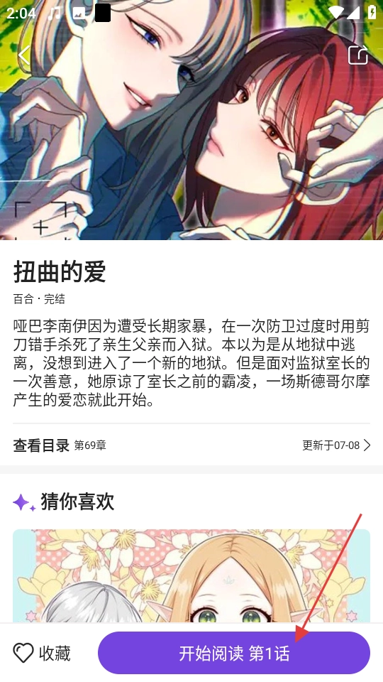 1、在首页热门漫画中,点击扭曲的爱漫画封面,进入该漫画详情页。