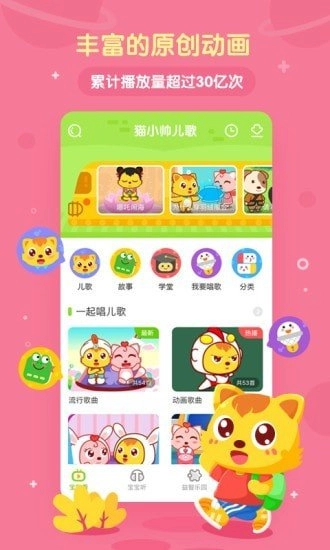 猫小帅儿歌是厦门孩子乐园网络科技有限公司开发,隶属于4399,是一款专门面向0 - 12岁儿童的亲子互动儿歌播放软件。此软件采用动画与儿歌相融合的方式,给予儿童寓教于乐的视听感受,内容包含经典儿歌、英文儿歌、百科知识以及古诗国学等,对儿童早期教育起到推动作用。
