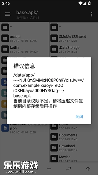 1、在反编译apk文件时,安卓设备需获取高权限。若未获取,当你修改完代码进行打包,系统便会提示无访问权限,如下图所示。若用户设备已root,就能获得高权限;若未root,也可借助虚拟机操作。当然,要是用户既不想root设备,又不想使用虚拟机,可在本站通过shizuku或shizuku魔改版ZeroPosed进行操作,网上有大量与之相关的操作教程。