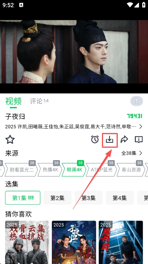 轻点目标影视的封面,即可跳转至详情页面,该页面会展示剧情简介、演员阵容、评分等相关信息。