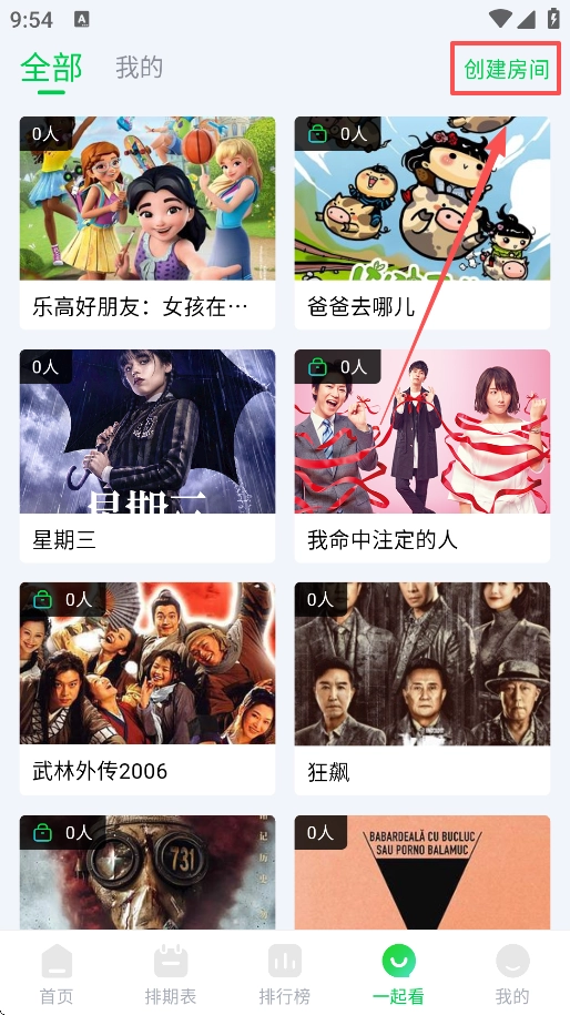 4、挑选想要观看的视频,随后点击创建房间,如此便完成操作。