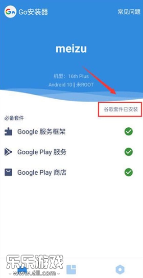 在本站开启软件,点击“go”一键安装所需套件,安装完毕后,会出现提示“谷歌服务已安装”,此后你便能轻松访问Google Play了。