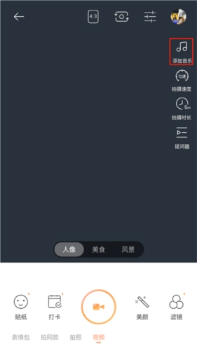 4、如果想要在视频里面加音乐的话,点击右边添加音乐功能;