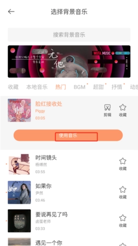 5、选择你吸纳该的音乐,点击使用即可。