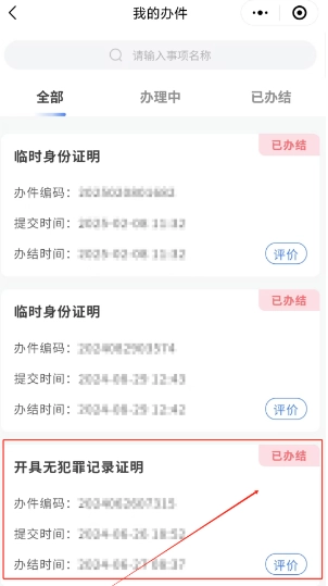 5、提交成功后,点击“我的办件”,进入办件详情页面。若办件仍处于办理过程中,页面仅会显示办件相关信息。