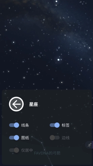 5、长按星座按钮,可选择显示星座标签或者图纸,这能让各星座的识别与观测变得更为便捷。