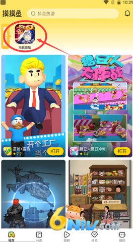 1、首先安装摸摸鱼最新版本,进入主页面,找到你想游玩的游戏。