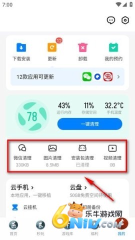5. 各项清理选项都极为直观,若想操作更为便捷,也能直接点击“我的”里的“一键清理”。