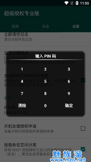 支持选择自动拒绝授权的倒计时、设置每个应用程序pin保护功能