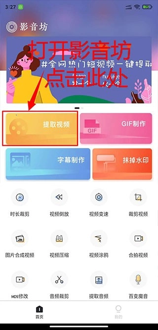 打开影音坊,点击提取视频;