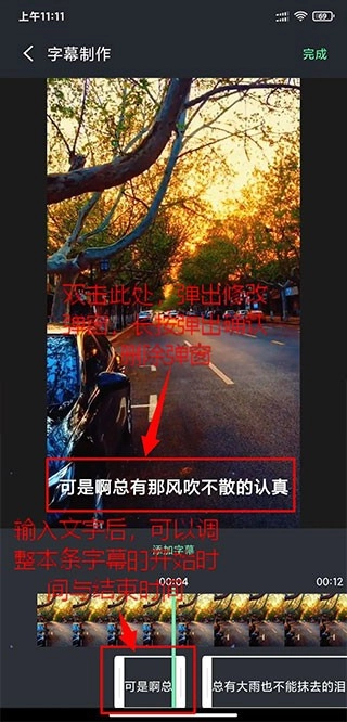 通过左右滑动选区,能够针对每一段话设定开始时间与结束时间。若想修改已输入的文字,双击该文字即可。