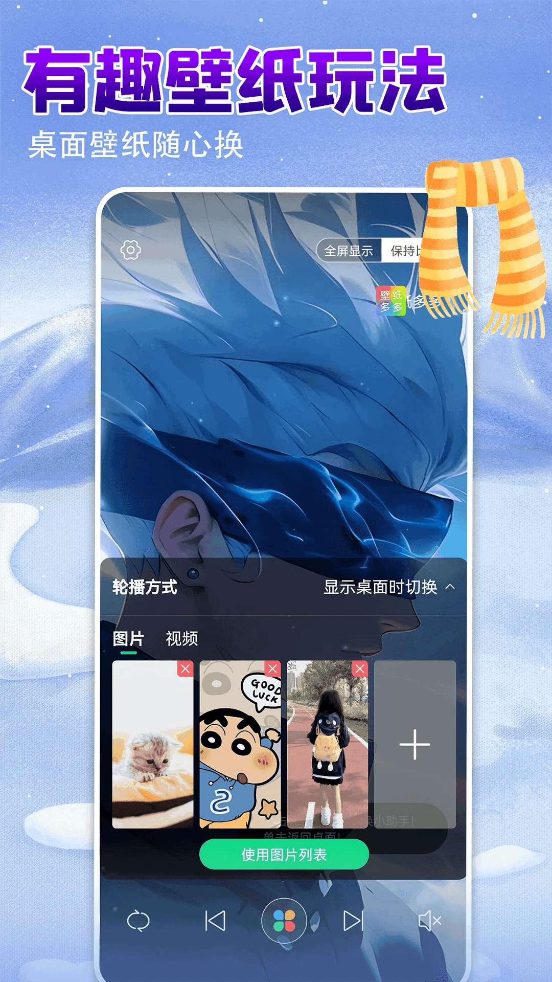 用户不但能够选用软件中已有的壁纸,而且还能自行上传壁纸或者视频,在首页点击旁边的加号就能完成操作。