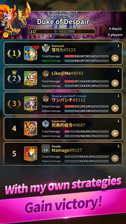 《三重幻想》的最新版本,为玩家准备了丰富多样的对战模式,其中涵盖单人挑战、多人竞技以及公会战等等。于单人挑战模式里,玩家得直面难度各异的关卡与敌人,依靠持续增强自身实力,从而解锁更为丰厚的奖励与更多的成就。在多人竞技模式当中,玩家能够同其他玩家展开实时对战,竞相角逐排名与荣誉。至于公会战,玩家必须和公会成员携手协作,一同抗衡其他公会,充分彰显团队的实力与智慧。