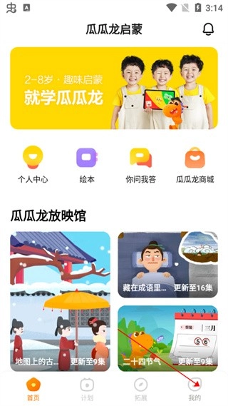 用户进入瓜瓜龙启蒙后,首先先在右下角点击【我的】。