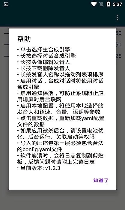 2、长按选择对话合成引擎