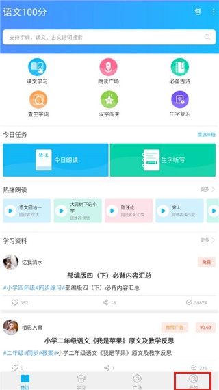 语文考100分该如何挑选课本 1、第一步,先在本站获取免费且易于安装的安装包,迅速在手机上完成安装,接着打开应用进入首页,点击“我的”。