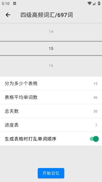 2. 系统能够自动保存记忆与复习进度,将学习进度进行统一展示,以便用户更方便地知晓各表格的背词状况。