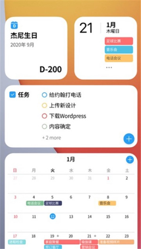 3. 用户在使用过程中,能够对日程显示的大小进行调节,以便于记录每一天日程的重要程度。