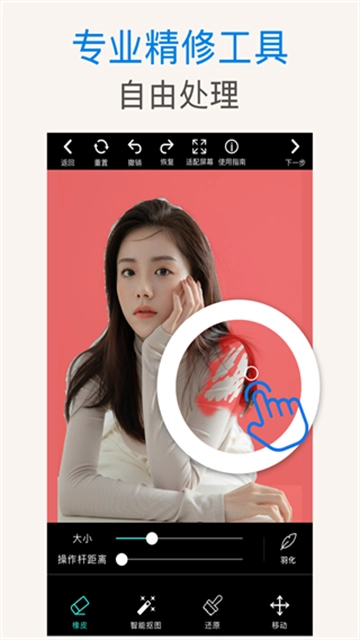 1. 用户在该软件上能够获得流畅的使用体验,软件还为用户提供精修工具等内容。
