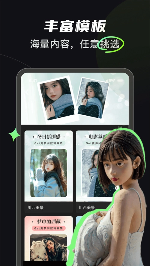 应用内汇集多种写真风格,全面满足不同用户的审美喜好和拍摄需求。