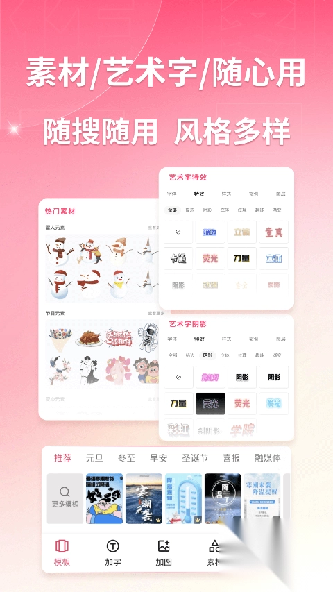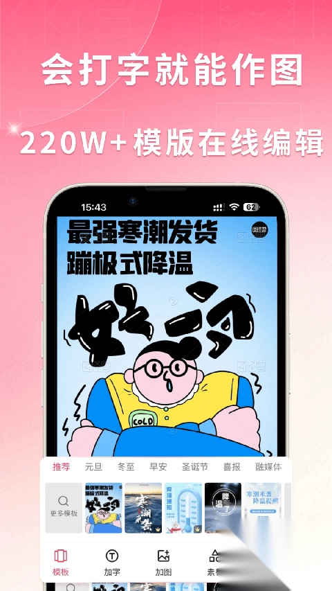 只需挑选模板,修改文字、替换图片,就能轻松完成各类场景图片的制作。操作极为简单,只要会打字就能上手使用。