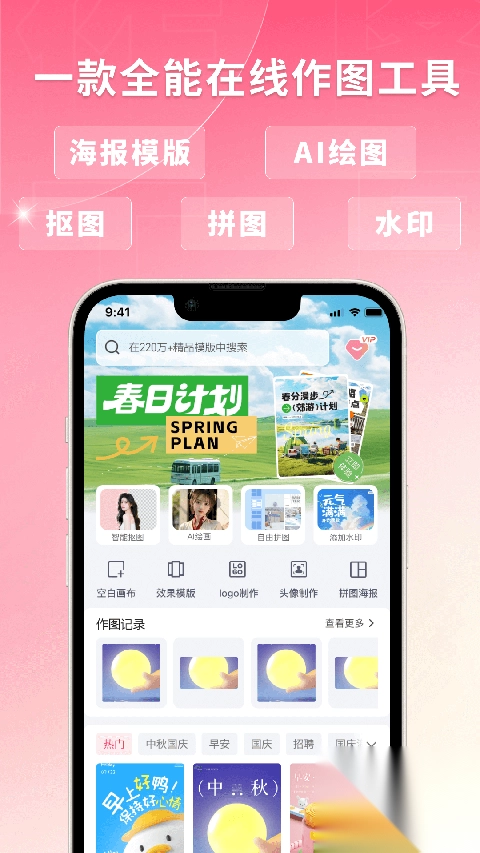 4超40万原创图片模板,包含手机海报、名片、营销长图、电商banner、淘宝店铺首页、公众号封面、邀请函、手机壁纸、每日一签、LOGO设计等多样类型,每日持续更新,适配各类场景需求。