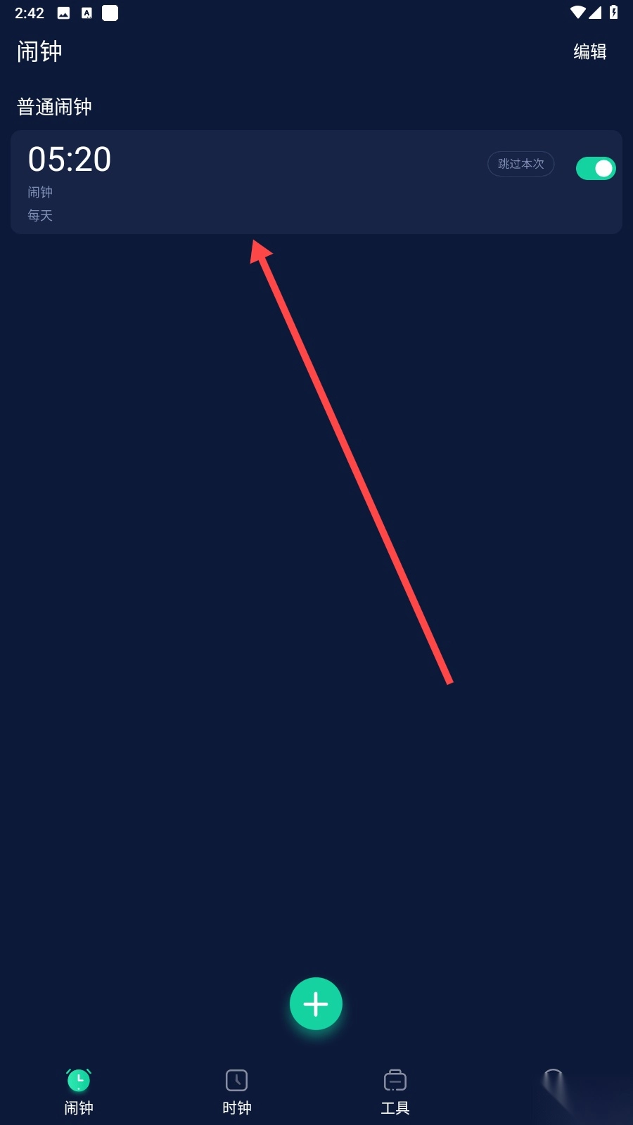 1、打开软件,进入主界面点击下方【+】按钮添加闹钟。