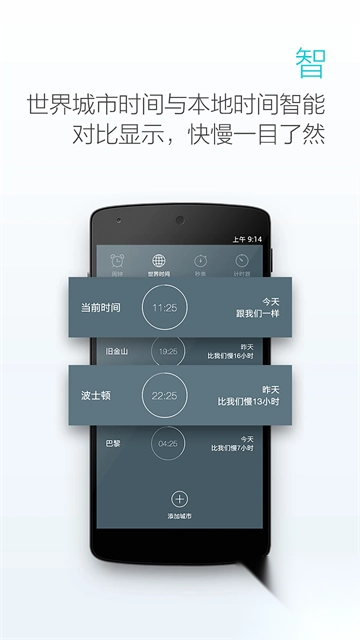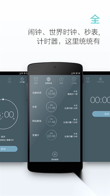 融合闹钟、全球时钟、计时器以及秒表等多种功能,功能完备。
