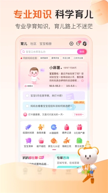3、配备育儿专家提供在线解答服务,专业的育婴指导贯穿孕期至育儿的整个过程。