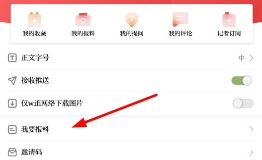 2、随后点击列表里的“我要报料”选项,在此处就能进行投稿了。