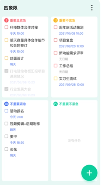 2、直观的日历视图和四象限视图帮助用户更好地规划时间。