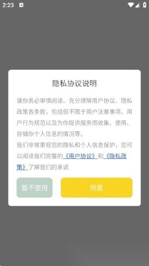 1.并安装好Procate手绘,然后打开软件,用户首先需要先同意用户协议和隐私政策