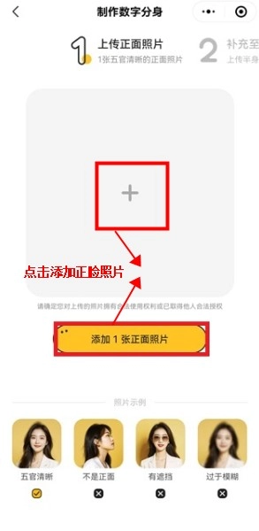 2. 上传清晰的正面照片