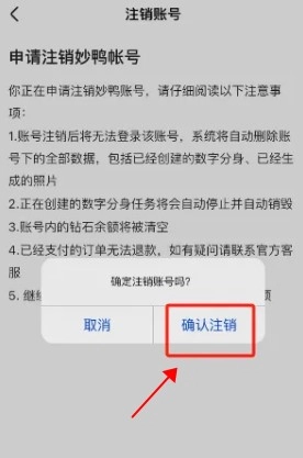 当您点击“申请注销”,系统会弹出确认注销的提示,此时点击“确认”,就能完成账户注销操作。