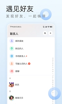 2、在网络平台上,就能与通讯录中的好友展开互动交流,所涉及的信息真实且可靠。