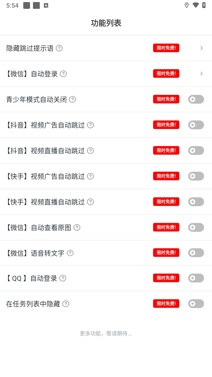 去广告利器堪称一款实力强劲的去广告软件。借助它,你能轻而易举地摆脱广告困扰。该软件支持抖音、微信、快手等众多软件的视频及直播广告自动放行,同时还具备关闭青少年模式、跳过隐藏提示语等功能,功能既全面又丰富。如此一来,你在使用手机时将彻底畅享自由,不再被任何广告问题所烦扰,为广大用户带来极为便捷的使用体验!