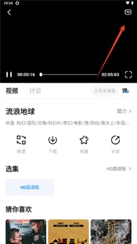 3、进入播放页面后,点击屏幕,这里就会弹出投屏功能。
