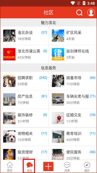 3、在“社区”界面,就能获取非常全面的信息分类板块;