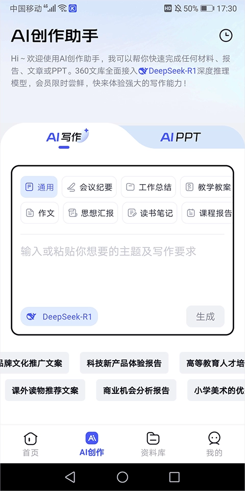 6、一键灵感生成:输入主题秒获文章框架与核心论点。