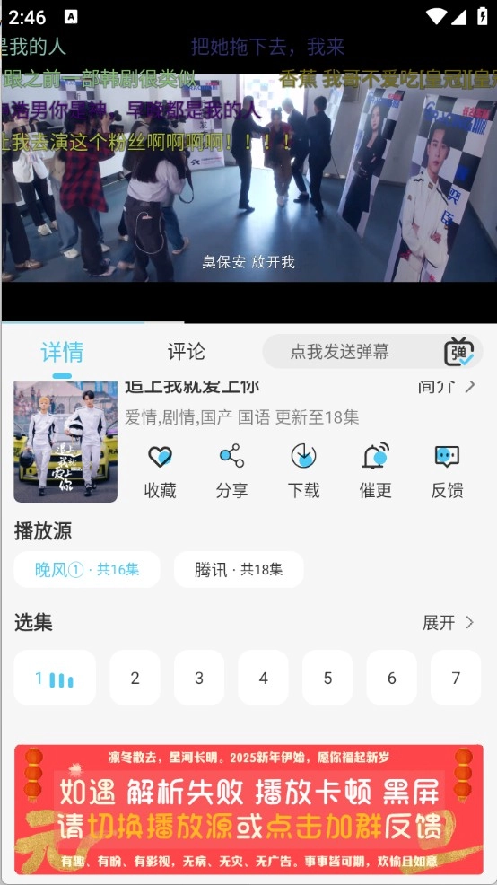 4、当找到自己想看的影片并点击打开后,就能播放该影视内容了,同时还能够观看弹幕以及进行换源操作。